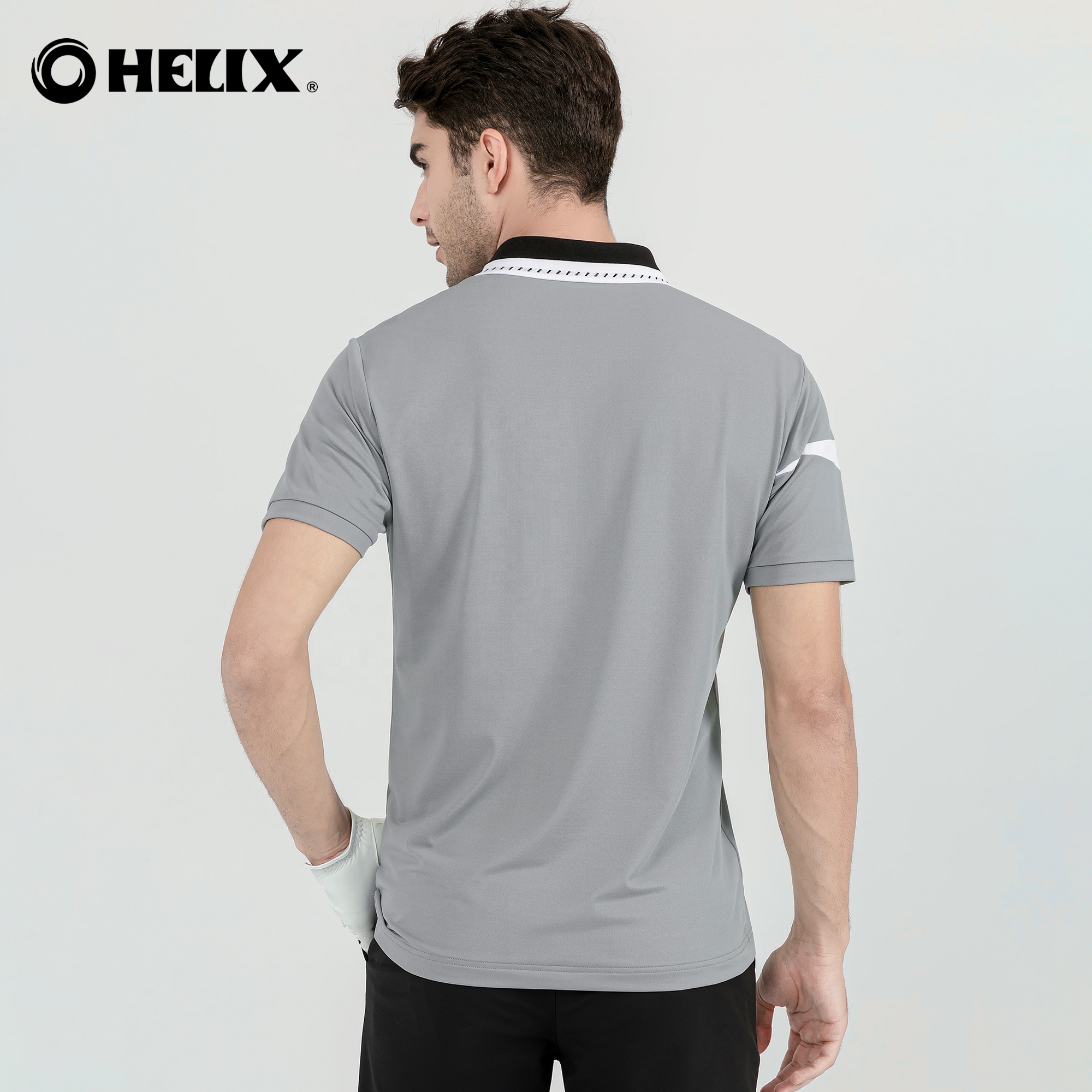 Helix Men's Polo Shirt Quick Dry Performance Short Sleeve Golf Polo Shirt Grayish Blue/pink