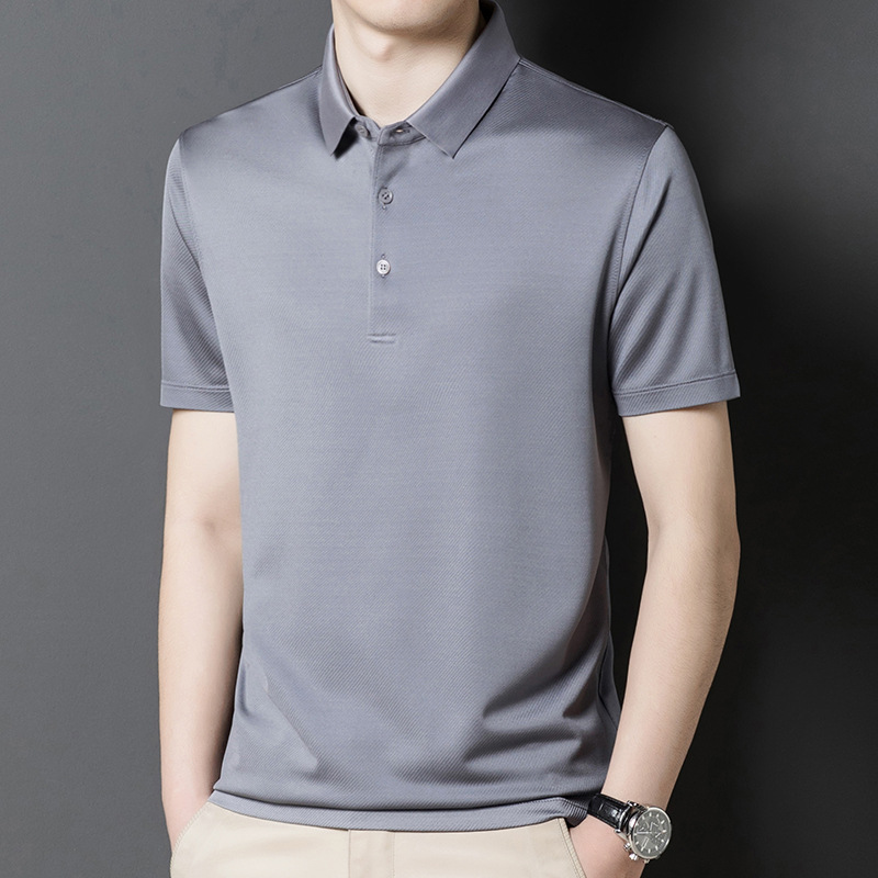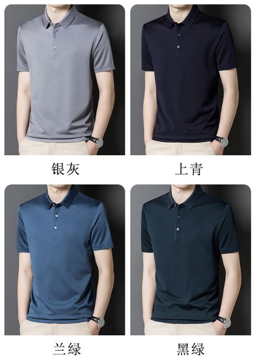 Factory Wholesale Men's Luxury Natural Material Silk Polo Shirts Solid 4 Colours