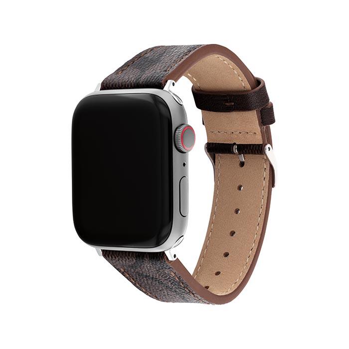 This mahogany strap is crafted of Coach Signature canvas and secures with black ionic hardware.