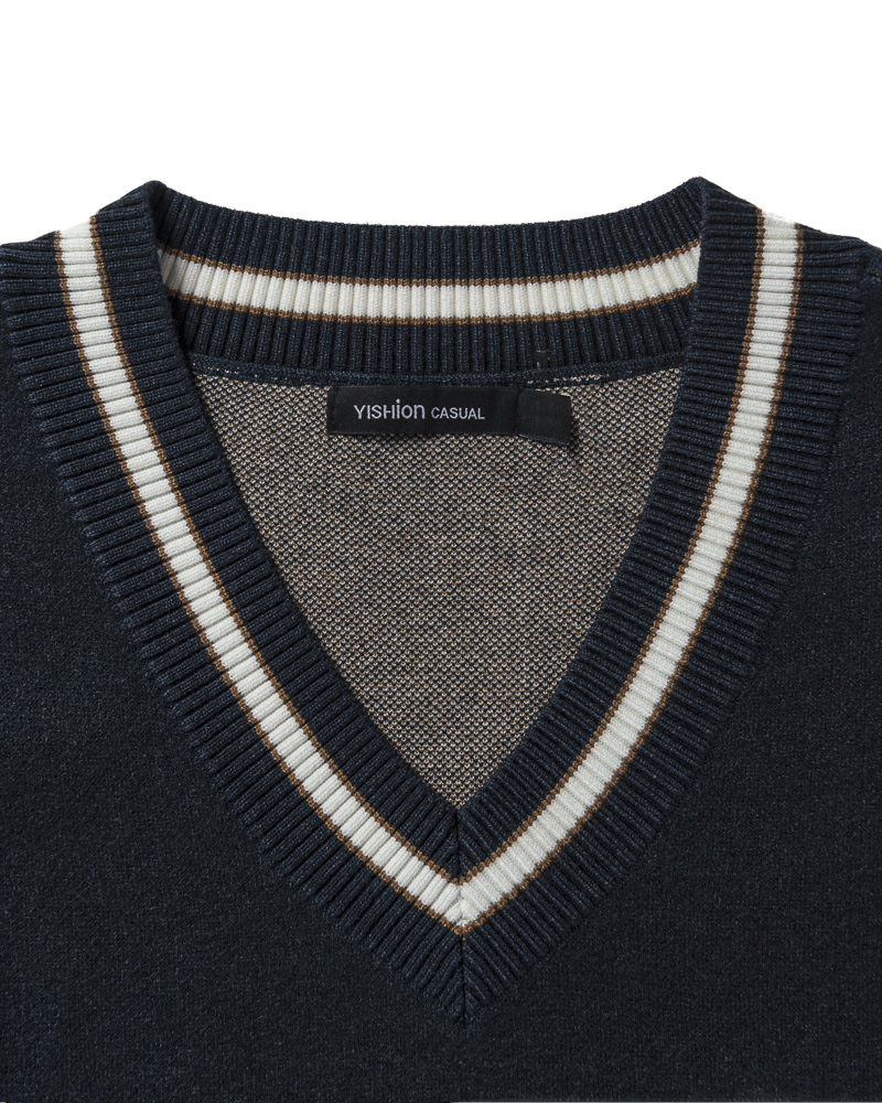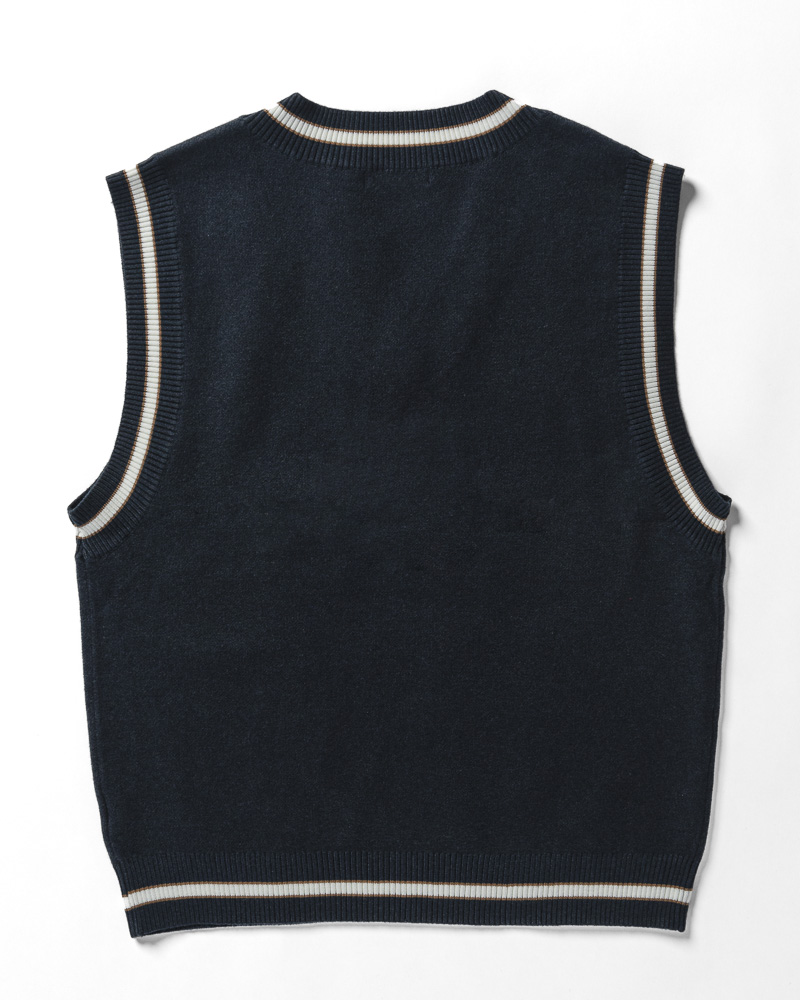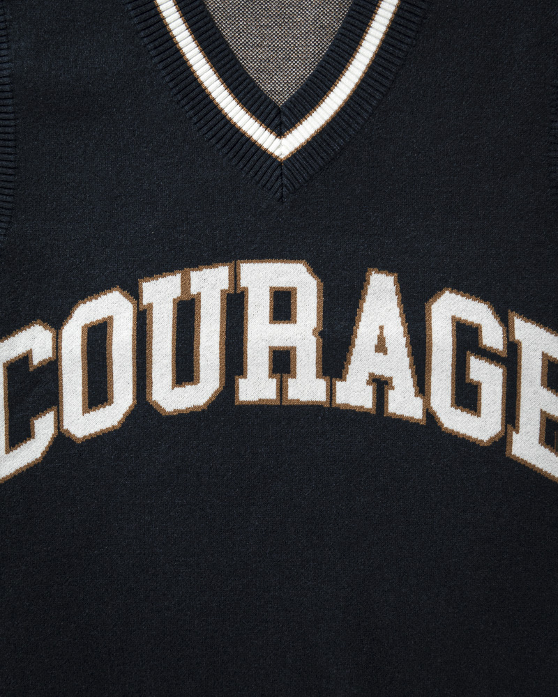 Yishion Men Knitted Varsity Vest With Contrasting Colour Hems and 'COURAGE' Slogan (Dk. Blue)