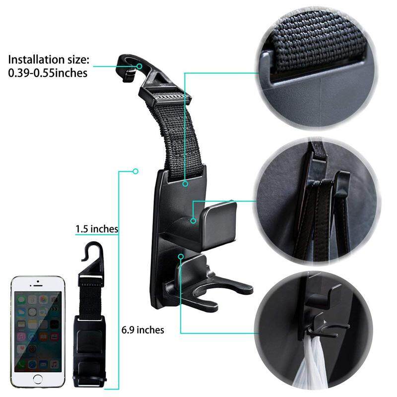 These car purse hangers are easy to install or remove without to elevate the headrest. They can be used as behind the seat car hooks or over the seat car hooks depending on whether you have a passenger in the front seat.