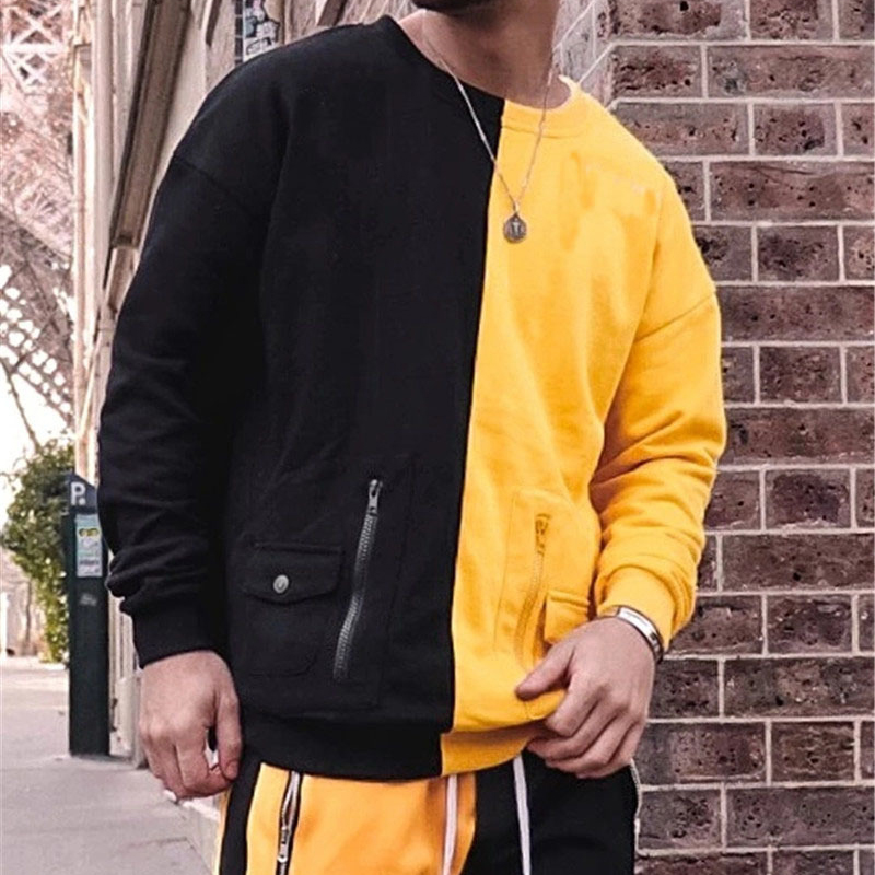 Item Wholesale Men street wear Tracksuit contrast color Sweatshirt Jogging Sweatsuit 2pcs set