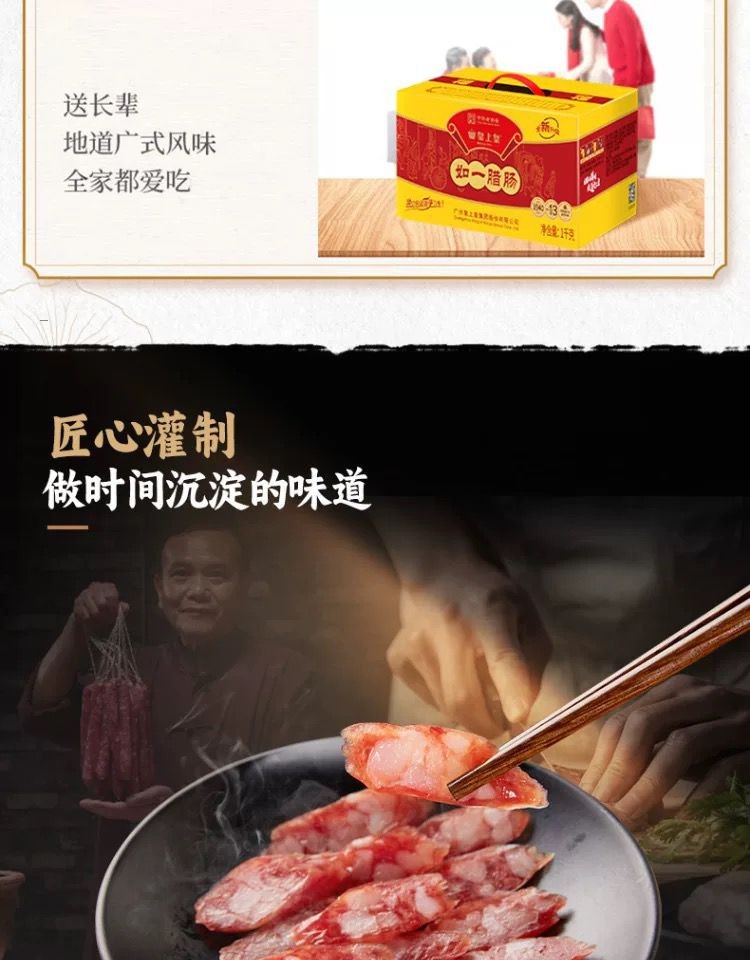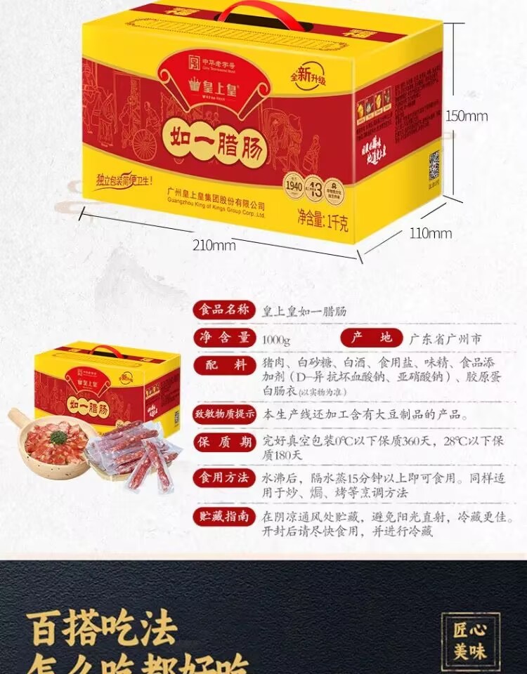 Emperor Huang Ruyiqifen thin sausage 1000g family gift box Cantonese sausage