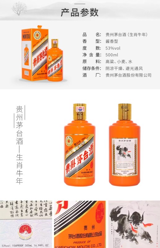 Kweichow Moutai is a 53-degree 500ML single bottle of Maotai Zodiac commemorative wine in 2021