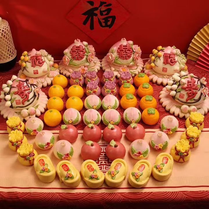 Youshanfang Flour Steamed Bun Gift Box - Shandong Specialty Decorative Noodles and Pastries - Celebration Gifts and Souvenirs - 'Our Family is Joyful' 54-Piece Set