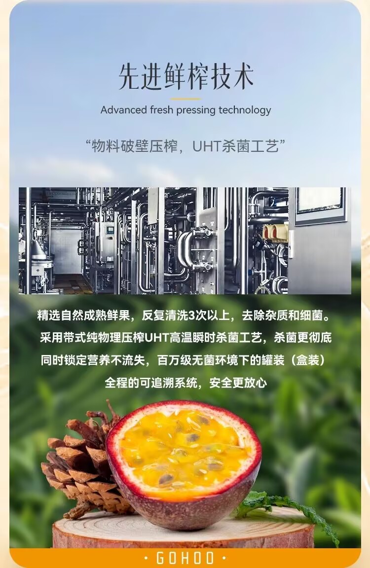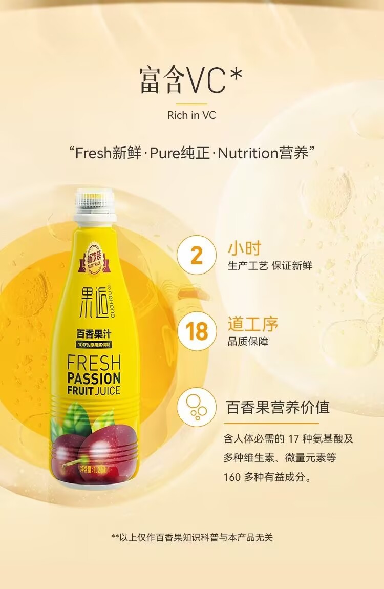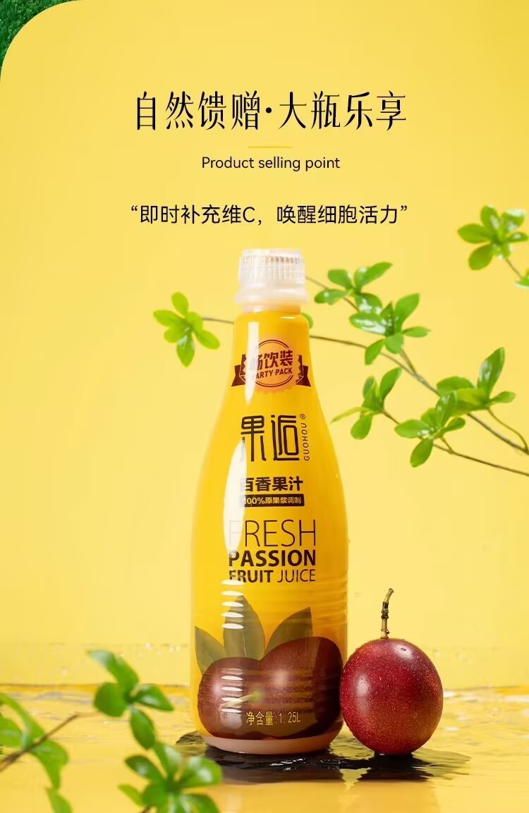 Fruit Hou passion fruit juice 0 add puree juice drink whole box wholesale appetizing dinner banquet drink 1.25L