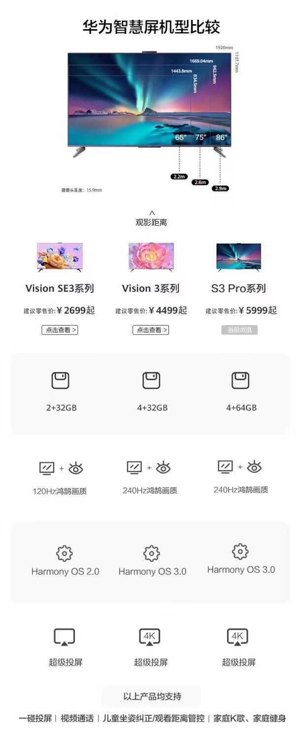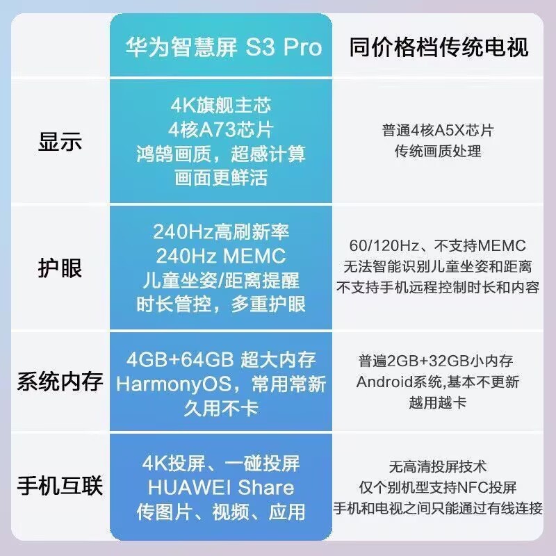 Huawei Smart Screen S3Pro75-inch 240Hz Honghu Picture Quality 4K HD Smart Full-screen Ultra-thin Home TV