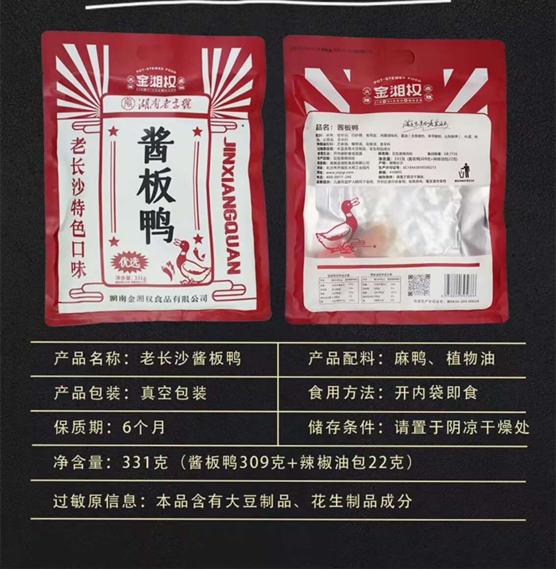 Jinxiang quan shou si Jiang salted duck Hunan Changsha specialty Changde weila office leisure snack Maya 331g