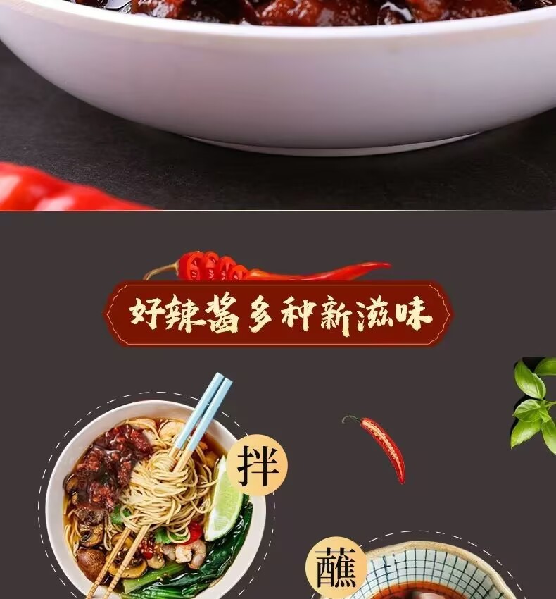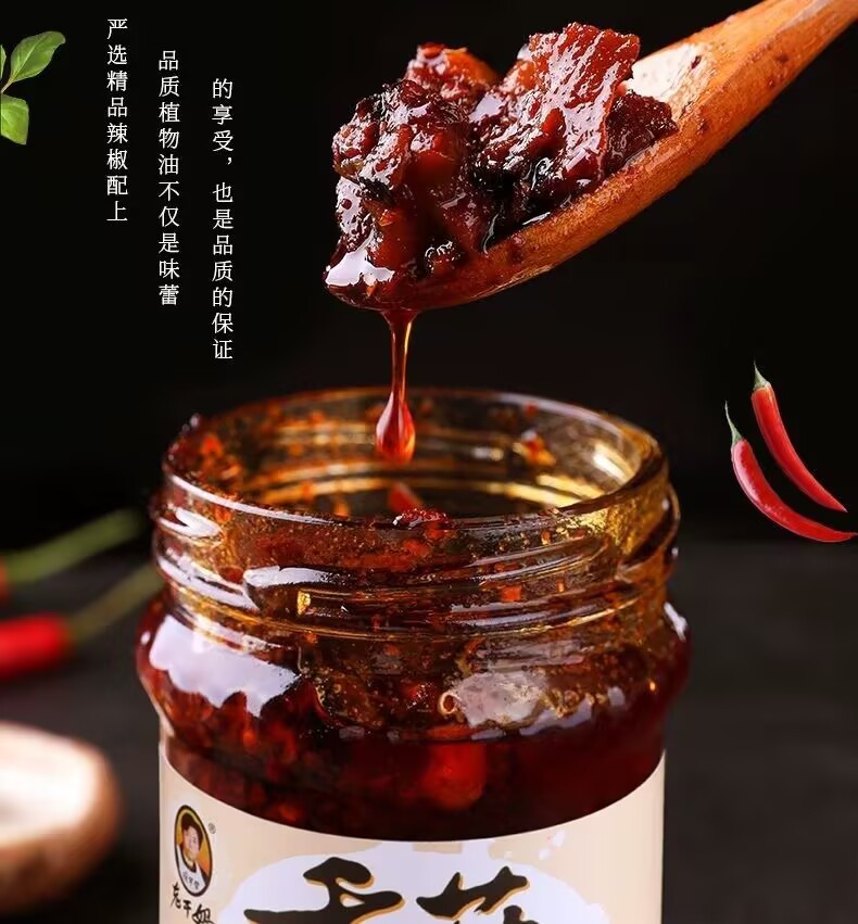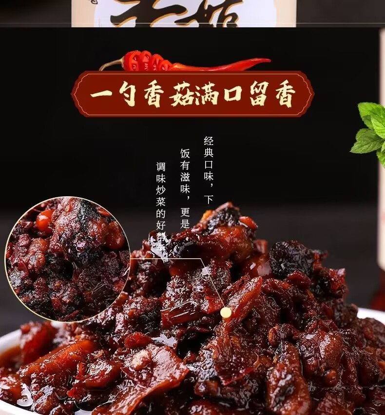 Laoganma mushroom oil Chili sauce Xiafanbibimbap sauce Chili sauce Guizhou specialty mushroom diced meat