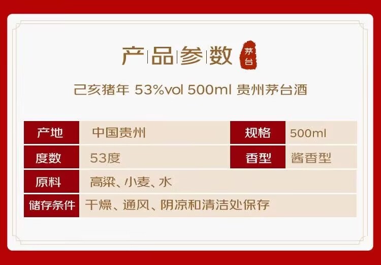 MOUTAI-flavor liquor in 53-degree 500ml single bottle to commemorate Jihai Year of the Pig