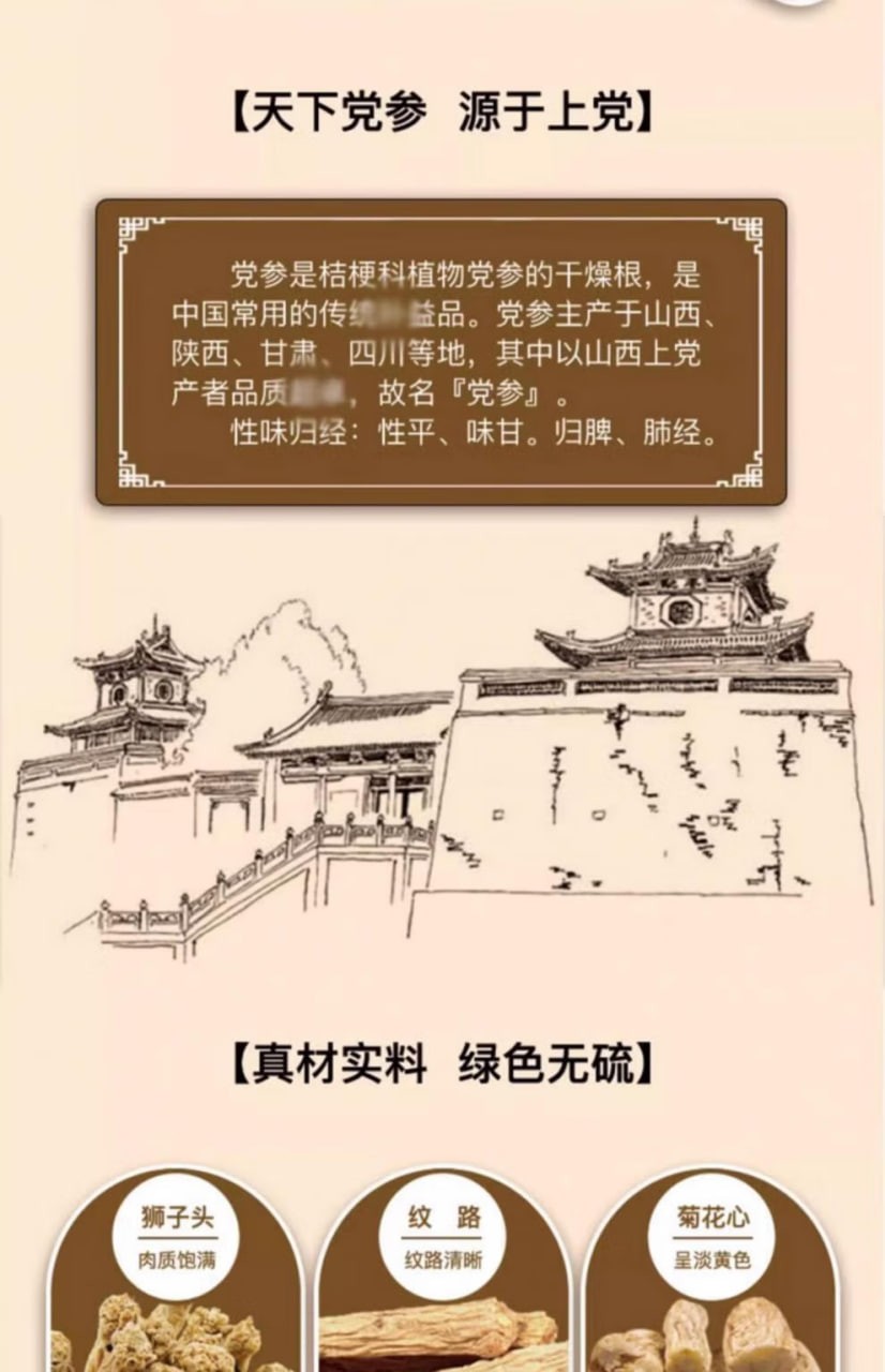 Shanxi Changzhi Pingshun specialty authentic large strips of Shangdang Lu Codonopsis ginseng festival gift elders gift box 500g