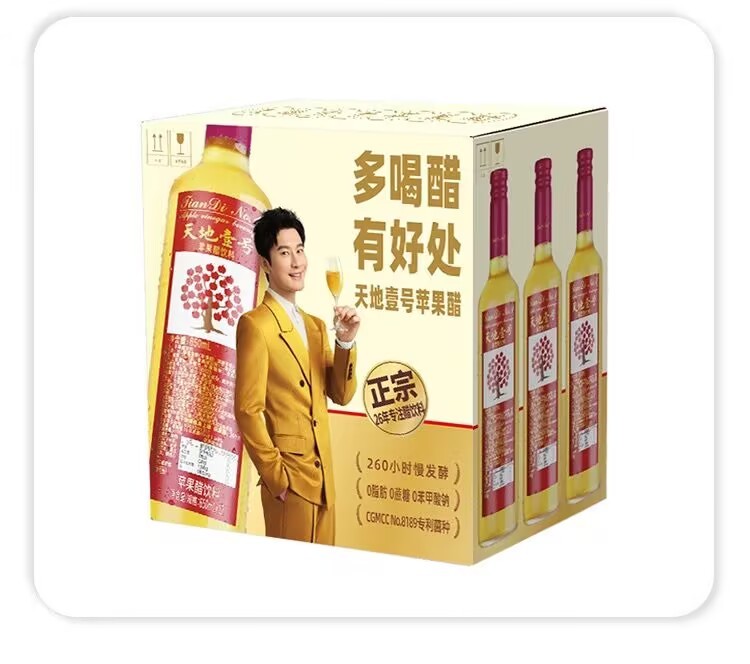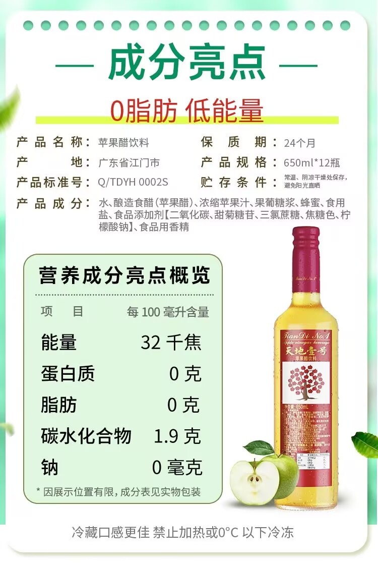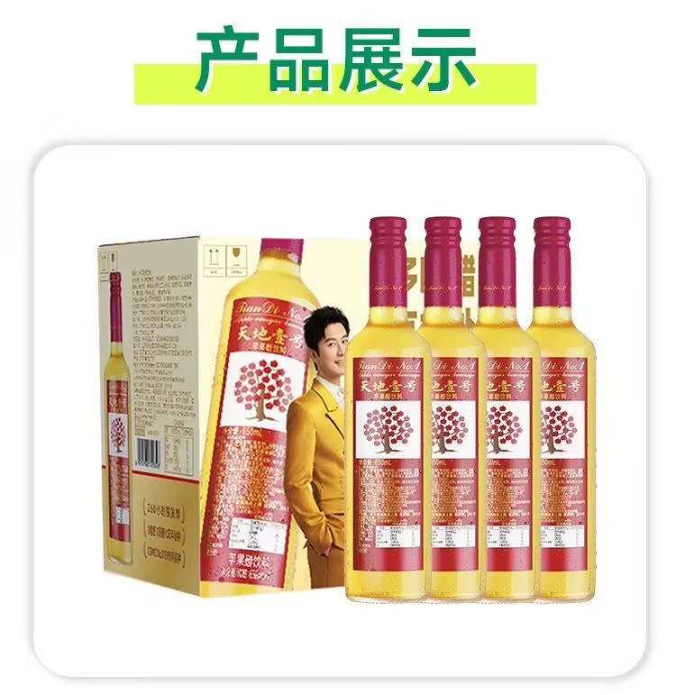 Tiandi No.1 Apple Vinegar Beverage 650ml×12 bottles, whole box, dinner, banquet, relieving boredom and spicy Tiandi No.1