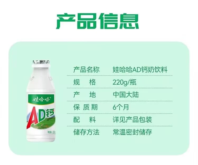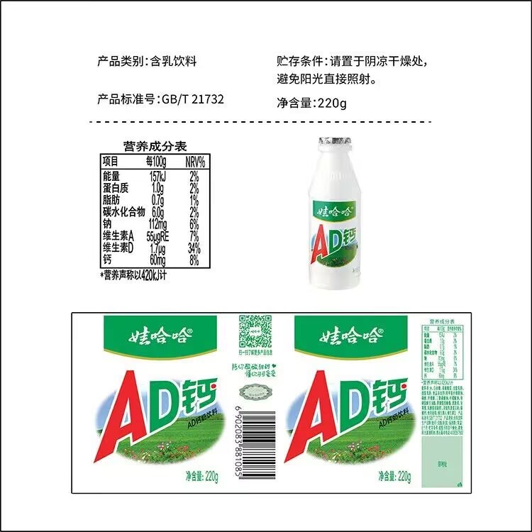 Wahaha AD calcium milk 220g*24 bottles of children's drinks