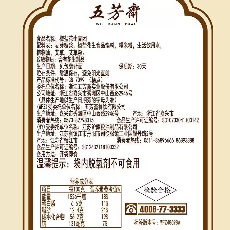 Wufangzhai salt and pepper peanut yolk meat floss bean paste boxed