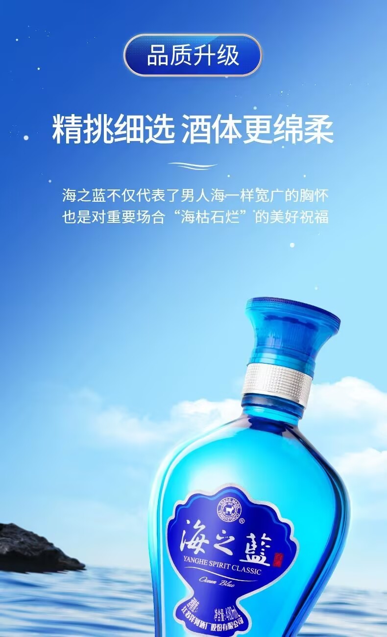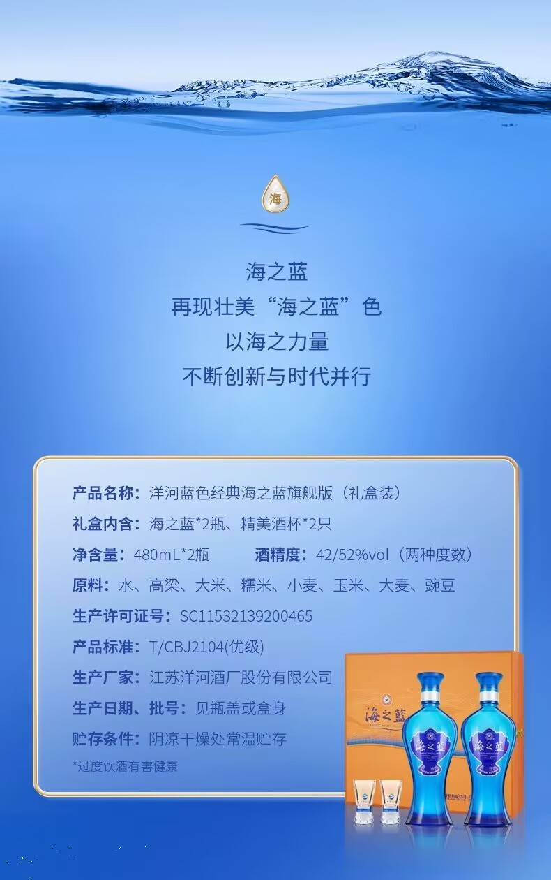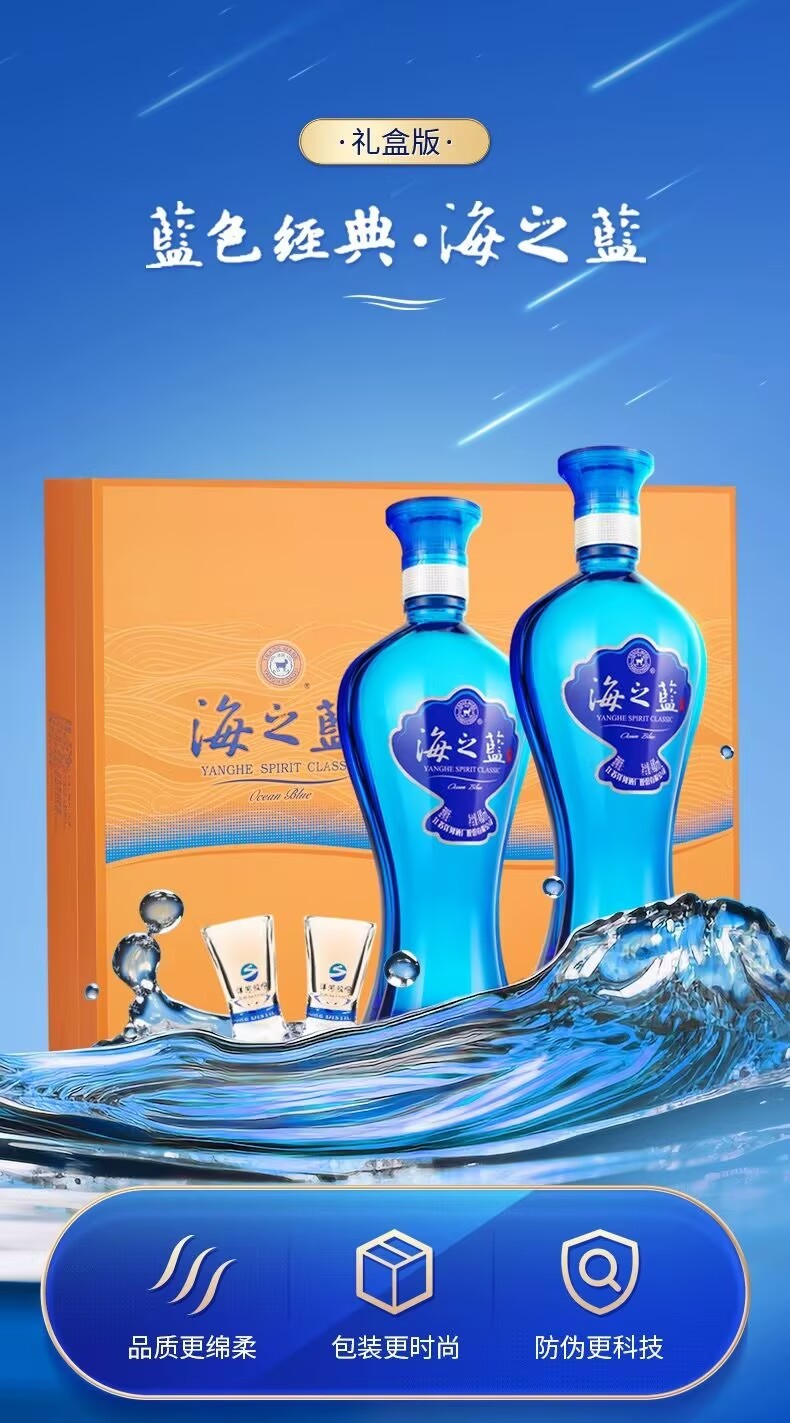 Yanghe Sea Blue 52-degree gift box 480ml*2 bottles gift box soft white wine